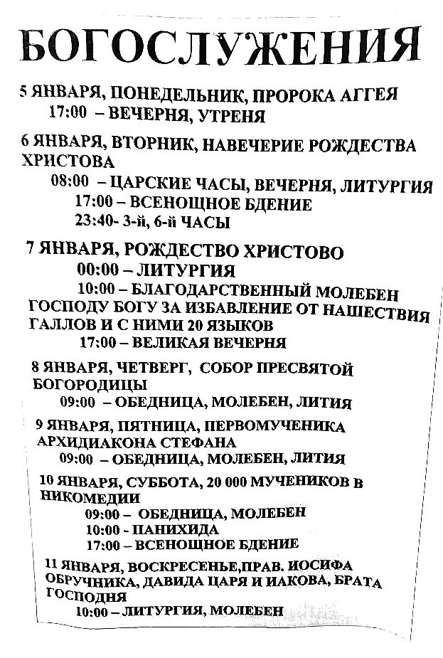 Расписание Богослужений